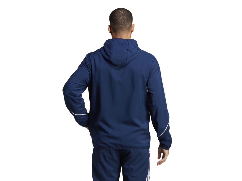 Správny futbalista nerieši, či zrovna svieti slnko alebo prší. Keď je čas hrať, tak sa ide na to. Túto futbalovú bundu adidas Tiro 23 League nosia hráči v nepriaznivom počasí, protože je vyrobená z vodeodolného tkaného materiálu a má elastické manžety. Ďalšiu ochranu pred dažďom ponúka praktická kapuca so sťahovacou šnúrkou.